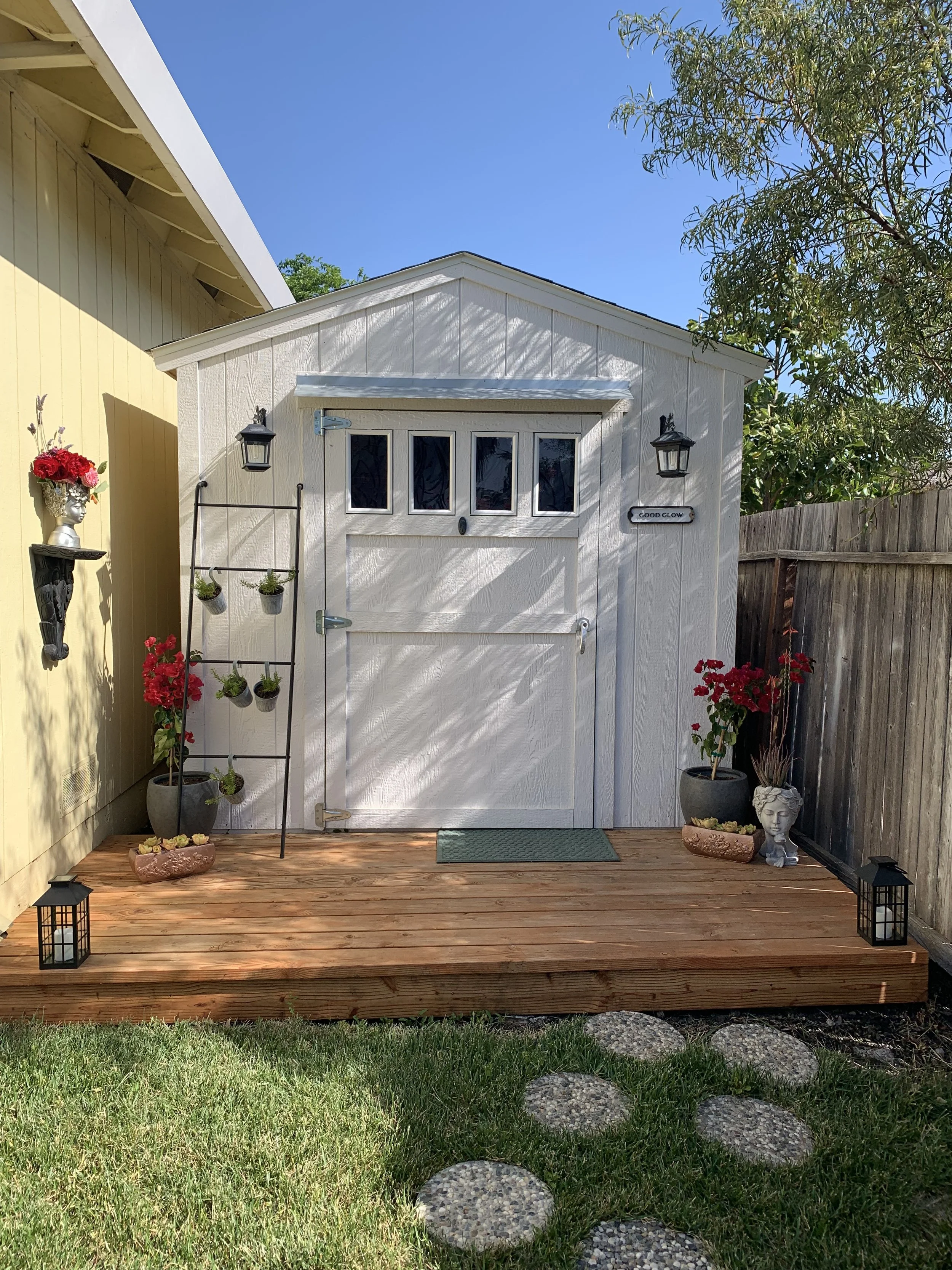 Good Glow Skin Therapy was created from the ground up — quite literally — by my husband and I, for my clients. Located in the quiet Laurel Creek neighborhood of Fairfield, CA, this studio was built in our garden with intention, care, and a deep commitment to creating something lasting.